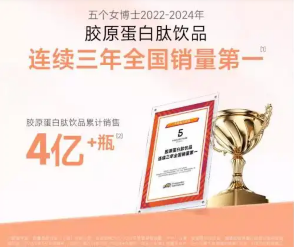“五个女博士”品牌的崛起始于在胶原蛋白肽这一核心赛道上的深耕与突破。面对传统大分子胶原蛋白吸收率低的行业难题,“五个女博士”通过自主的生物酶解技术,成功制备出分子量小于1000道尔顿的小分子胶原蛋白肽,大幅提升了吸收效率。截至2025年第一季度,该胶原蛋白肽产品全网累计销量已突破4亿瓶,显示出坚实的消费者信任。